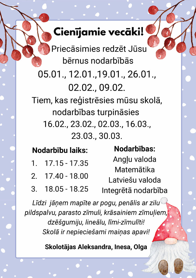 No 2026.gada 2. februāra plkst. 8:00 vecāki (aizbildņi) var reģistrēt savu bērnu Daugavpils Saskaņas pamatskolas 1.klasē 2026./2027.m.g.: