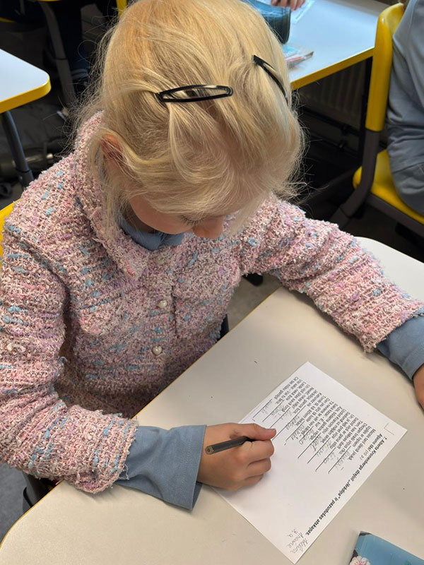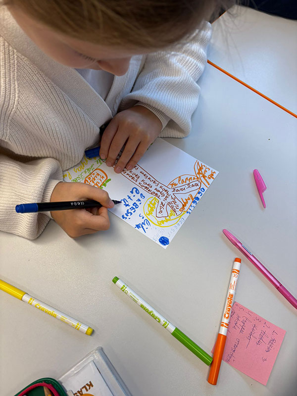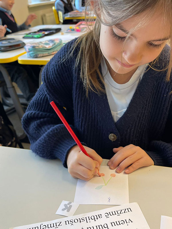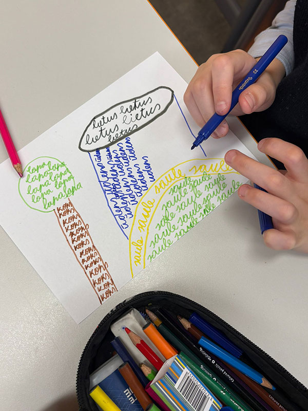 Izglītojamie aizdomājās un sprieda par latviešu valodas nozīmi un skaistumu, kā arī darbojās grupās vai individuāli, iepazīstot valodas daudzveidību. Bērni minēja krustvārdu mīklas, veidoja alfabētu, ilustrēja frazeoloģismus, meklēja vārdus burtu jūklī, trenēja uzmanību un attīstīja lasītprasmi, radoši darbojās, veidojot savas “valodas brilles” un vārdu gleznas, rakstot dzejoļus ar atskaņām.