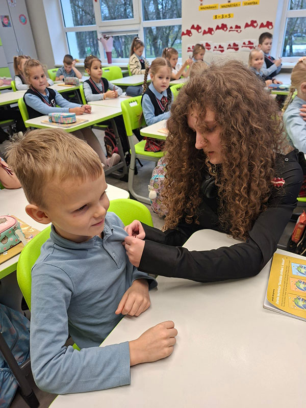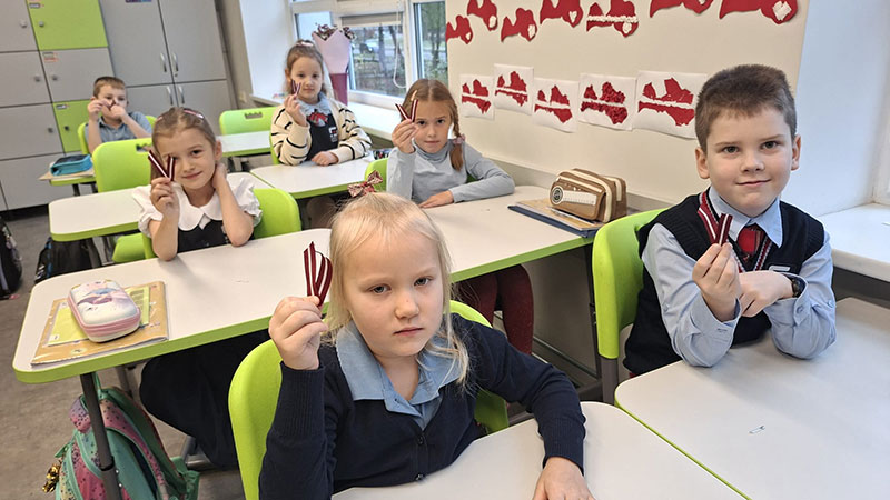 Patriotiskais novembris Daugavpils Saskaņas pamatskolā iesākās ar Sarkanbaltsarkano lentīšu locīšanu sākumskolas klasēs. Vecāko klašu skolēni nāk pie mazajiem skolas bērniem, lai stāstītu par Lāčplēša dienas un Latvijas karoga vēsturi. Nodarbību noslēgumā visi kopā, mazie un lielie skolas bērni, vienojās Sarkanbaltsarkano lentīšu locīšanā, kas tiek piespraustas tuvāk pie mazajām sirsniņām, lai justos piederīgi skolas saimei, pilsētai un Latvijai.