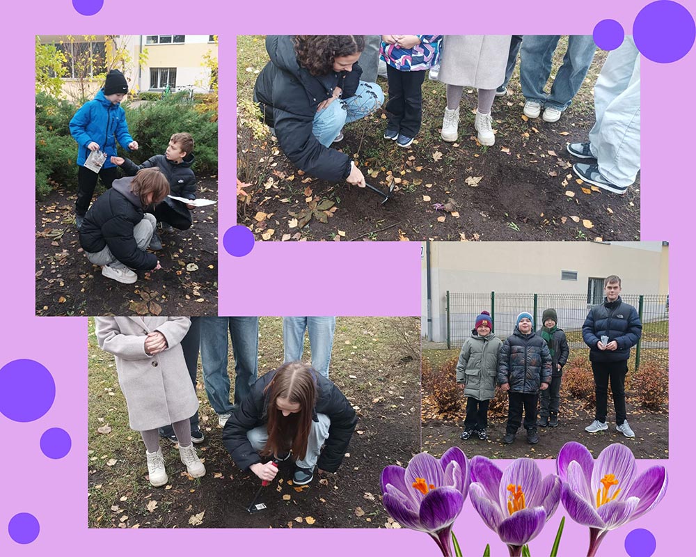 Kad pavasarī pirmie krokusi uzziedēs, skolas pagalms pārvērtīsies par krāsainu un dzīvīgu ziedu pļavu, atgādinot, ka arī mazi darbi var nest lielu prieku un radīt skaistumu apkārtējiem.