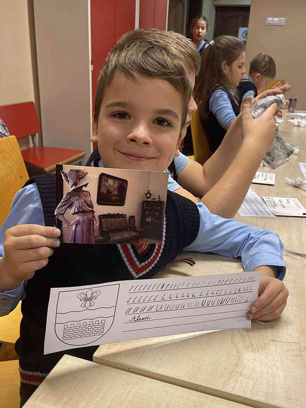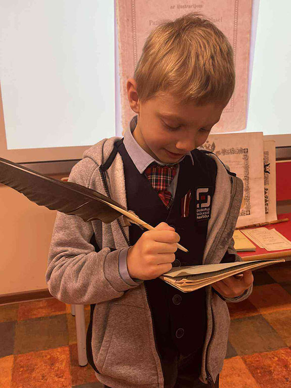 Muzejpedagoģiskajā nodarbībā skolēni iepazinās ar ekspozīciju, kas veidota no muzeja krājuma autentiskajiem priekšmetiem un stāsta par Daugavpils pilsētas un novada skolām 19. un 20. gadsimtā.