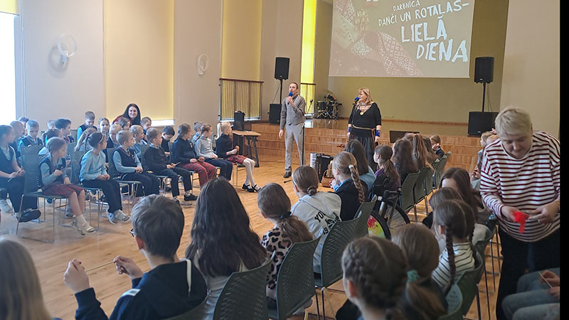Nodarbības laikā skolēni uzzināja, kā senāk tika svinēta Lielā diena, kā arī aktīvi iesaistījās dažādās tautas rotaļās, dančos un dziesmās. Bērniem bija iespēja iepazīt arī tradicionālos mūzikas instrumentus – kokli, vijoli, mežragu, stabuli, akordeonu un citus. Visvairāk atmiņā palika kokles un vijoles skanējums.